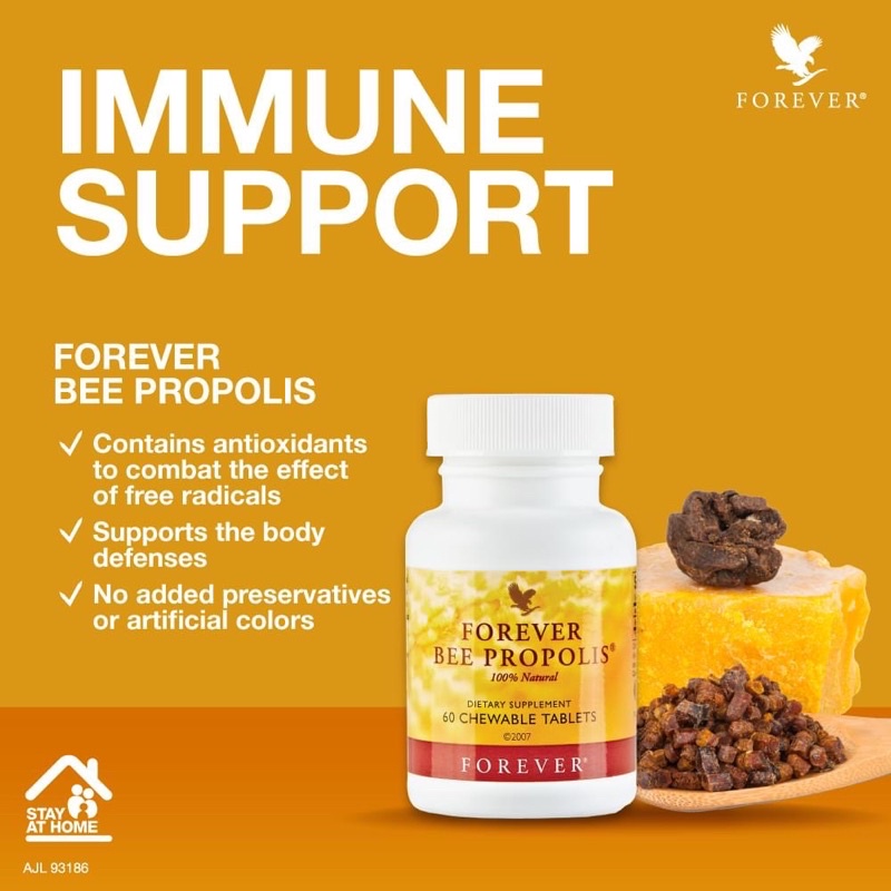 فوراور بی پروپولیس (Forever Bee Propolis) یا همان قرص بره موم زنبور عسل یکی از ارزشمندترین مکملهای طبیعی شرکت Forever Living است که به دلیل دارا بودن ترکیبات فوقالعادهای مانند بره موم زنبور عسل، پروتئین سویا و ژل رویال، نقش بسیار مهمی در تقویت سیستم ایمنی بدن، پیشگیری و بهبود بیماریهای ویروسی و عفونی (از جمله آنفولانزا، HPV یا زگیل تناسلی و حتی کرونا) ایفا میکند.