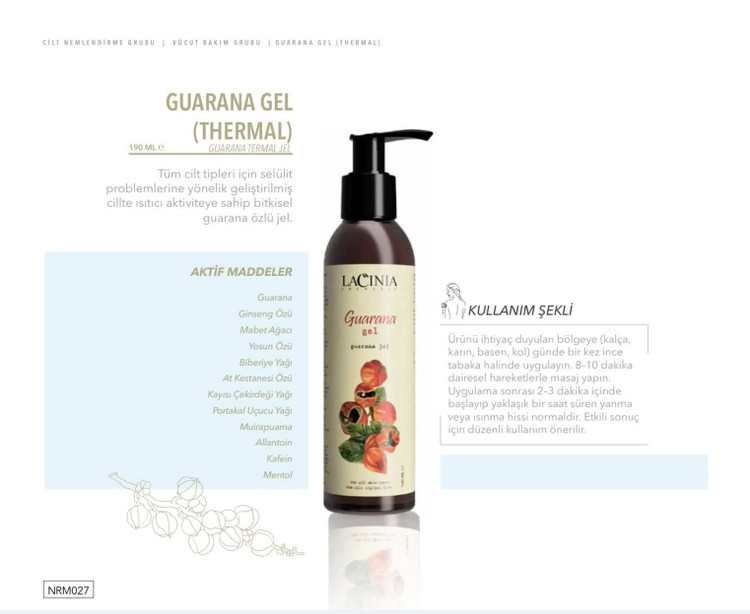 این ژل گیاهی حاوی عصاره گوارانا برای رفع مشکلات سلولیت در انواع پوست طراحی شده و دارای خاصیت گرمکننده روی پوست است.