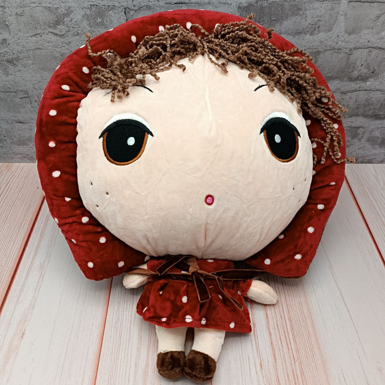 عروسک بالشتی دختر ۴۵ سانتی ( زرشکی خال خال )